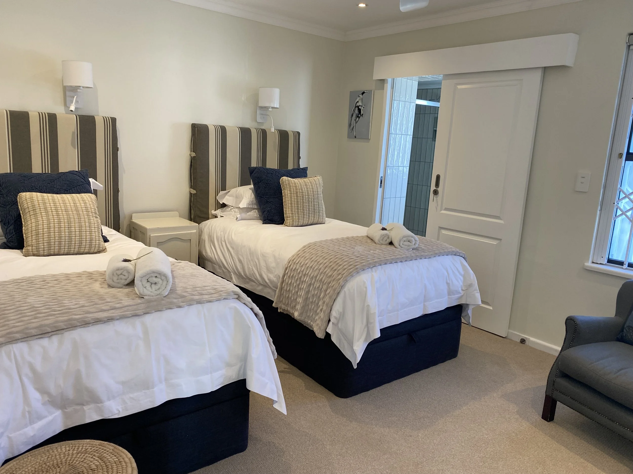 This house boasts 5 bedrooms all ensuite. Large enough for a big extended family stay or for a group of friends. With its open plan lounge dining area, kitchen, all the mod-cons and large scullery/laundry area, it makes a long stay organized and easy. There is a sunny swimming pool with loungers, large, covered deck area with fire-pit and much, much more, all within 5 minutes of the beach, lagoon and shops.